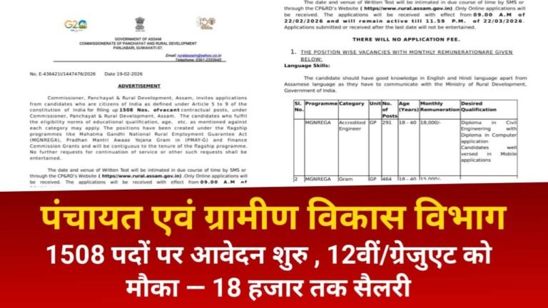 PNRD Assam Apply Online 2026: 1508 पदों पर आवेदन शुरु , 12वीं/ग्रेजुएट को मौका — 18 हजार तक सैलरी