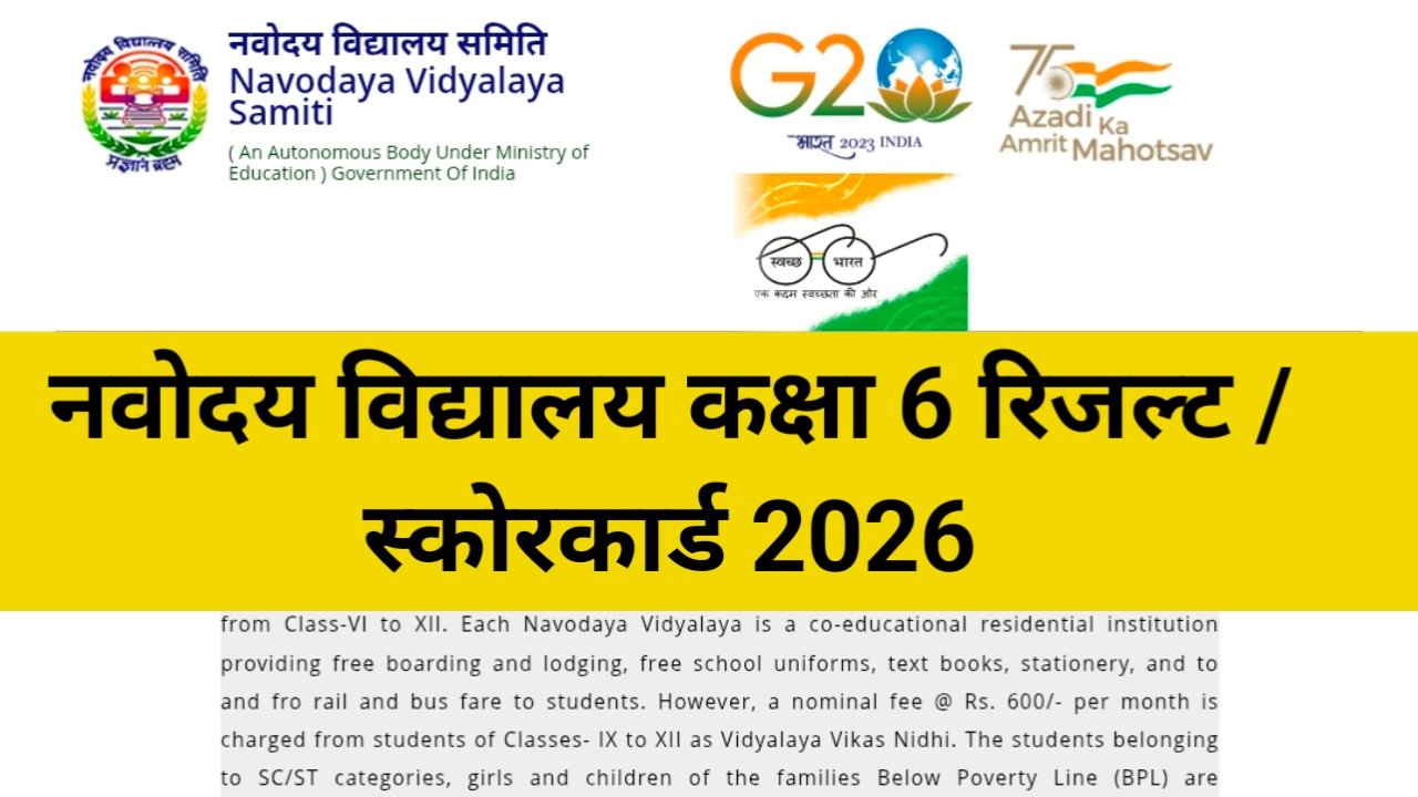 JNVST Class 6 Result 2026 Kab Aayega: देशभर के स्टूडेंट्स और पेरेंट्स के लिए बड़ी खबर है। नवोदय विद्यालय समिति जल्द ही JNVST Class 6 Result 2026 जारी करने जा रही है। इस बार लगभग 20 लाख छात्रों ने Jawahar Navodaya Vidyalaya Selection Test (JNVST) के जरिए क्लास-6 में एडमिशन के लिए आवेदन किया था। अब फेज-1 परीक्षा देने वाले उम्मीदवारों का रिजल्ट सबसे पहले जारी होगा।