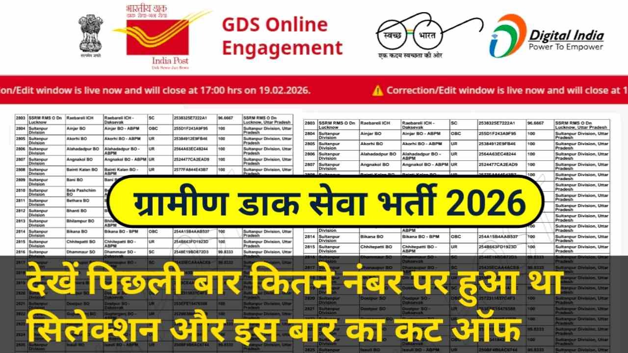 Post office GDS Cutoff 2026: देखें पिछली बार कितने नंबर पर हुआ था सिलेक्शन! इस बार का कितना रहेगा कट ऑफ